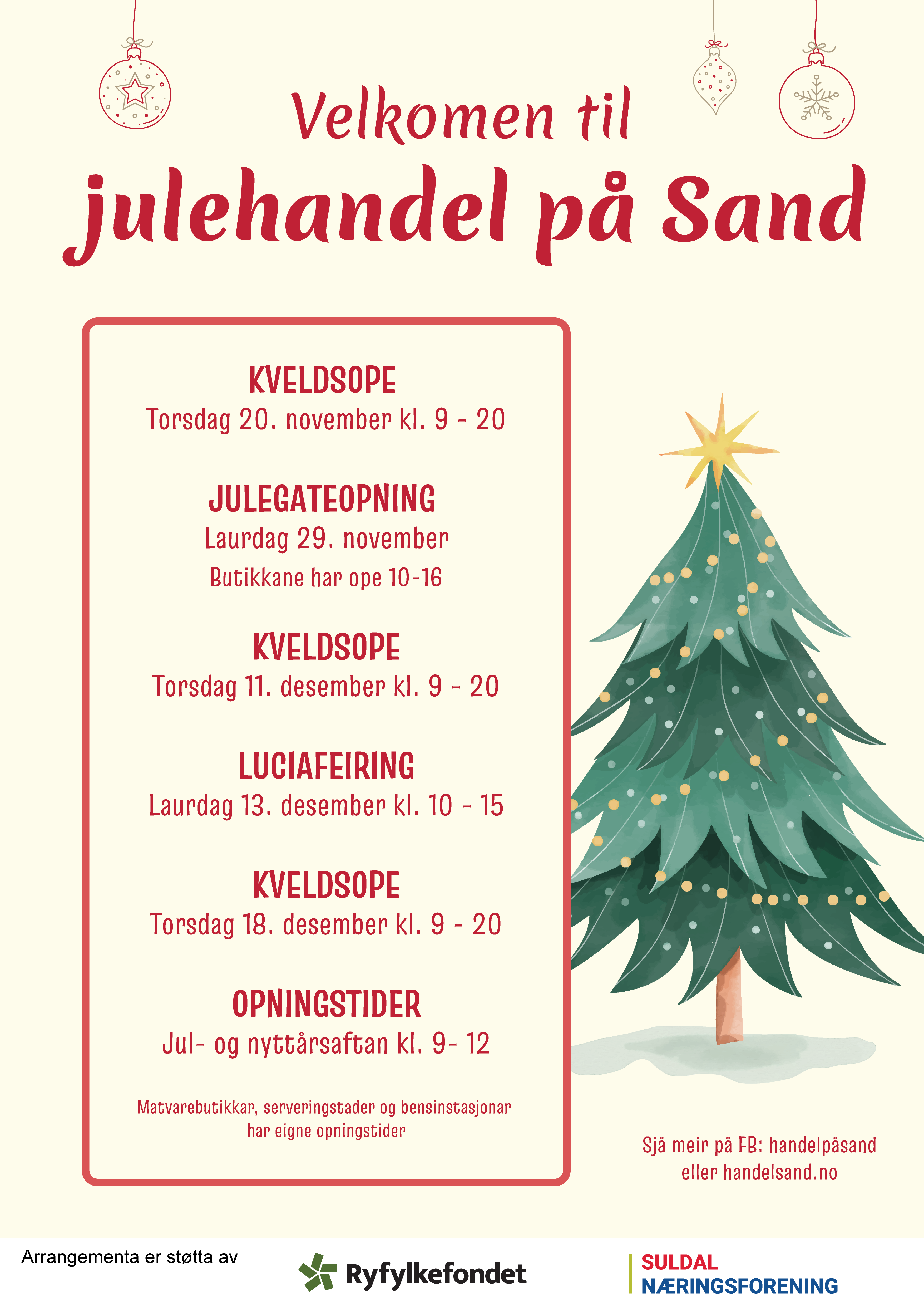 Følg med på FB handlpasand for detaljert informasjon.